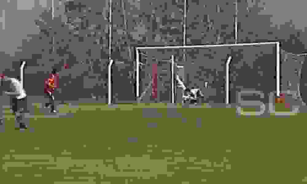 En esas imágenes se observan dos atajadas del marplatense en el clásico entre el Rey de Copas y Racing. Fue en el 2006, en el marco de un partido por la novena división.